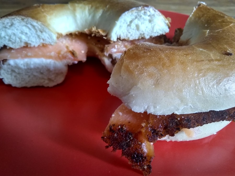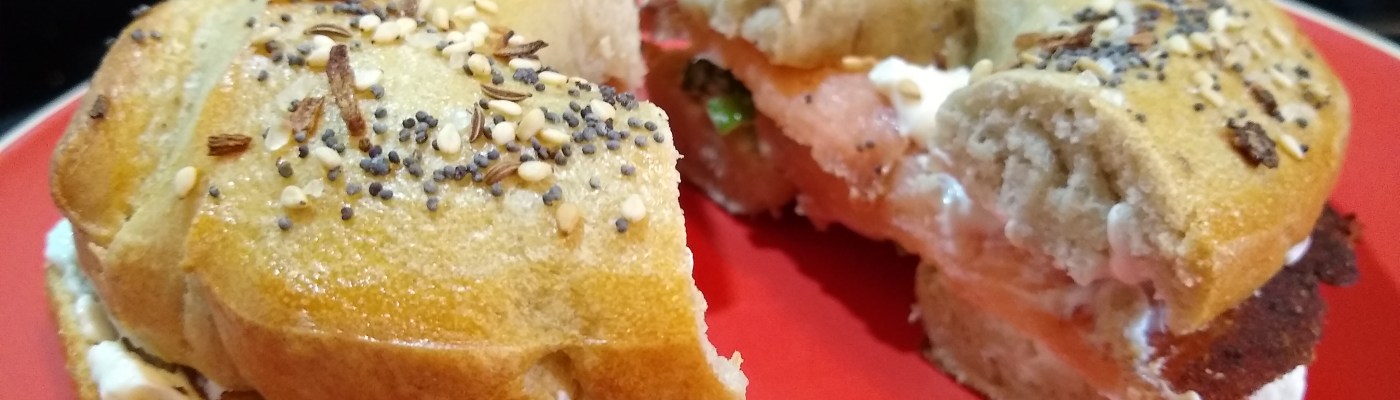 The result is really everything I could possibly want in a bagel, though I expected them to be larger and they’re not perfectly round. But they’re chewy without being too dense, the bread is tangy with a hint of onion, and the toppings didn’t fall off.