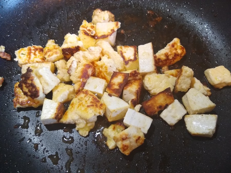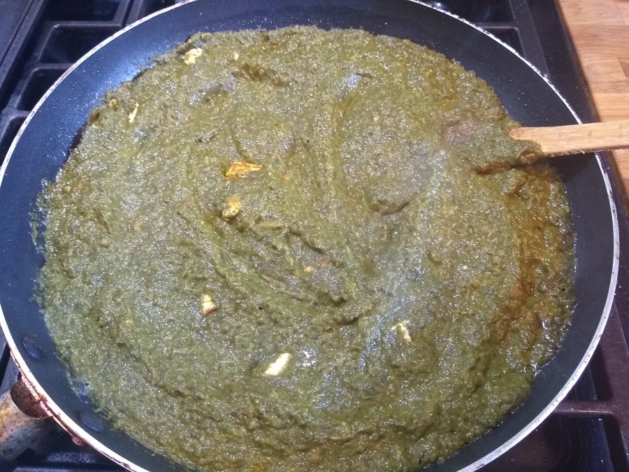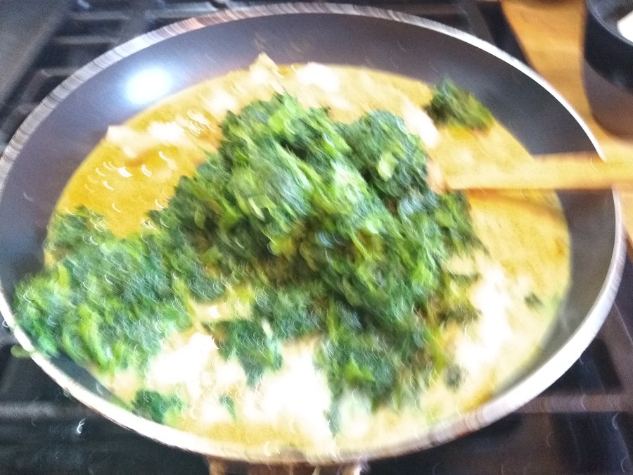Meanwhile, I browned the cheese in a little olive oil, then mixed in the blended spinach.