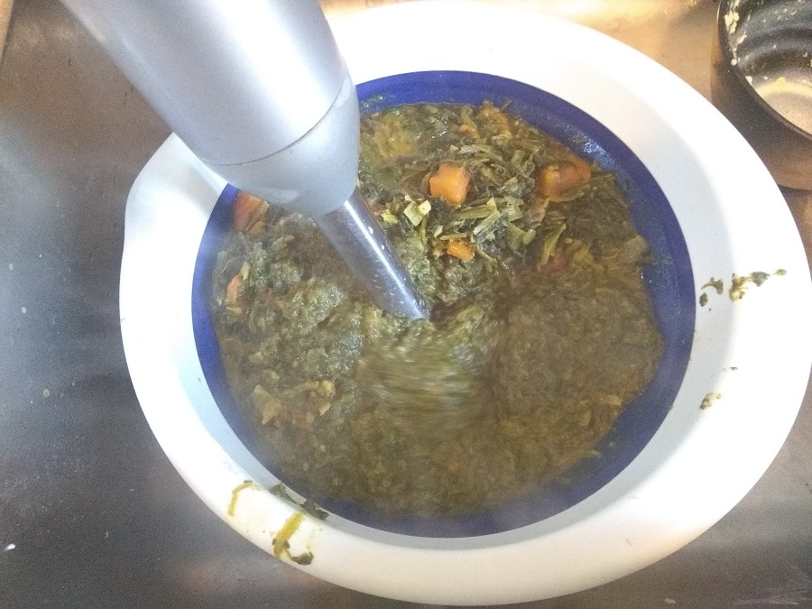 This was cooked for twenty minutes, then left to cool a few minutes and blended it with a stick blender.