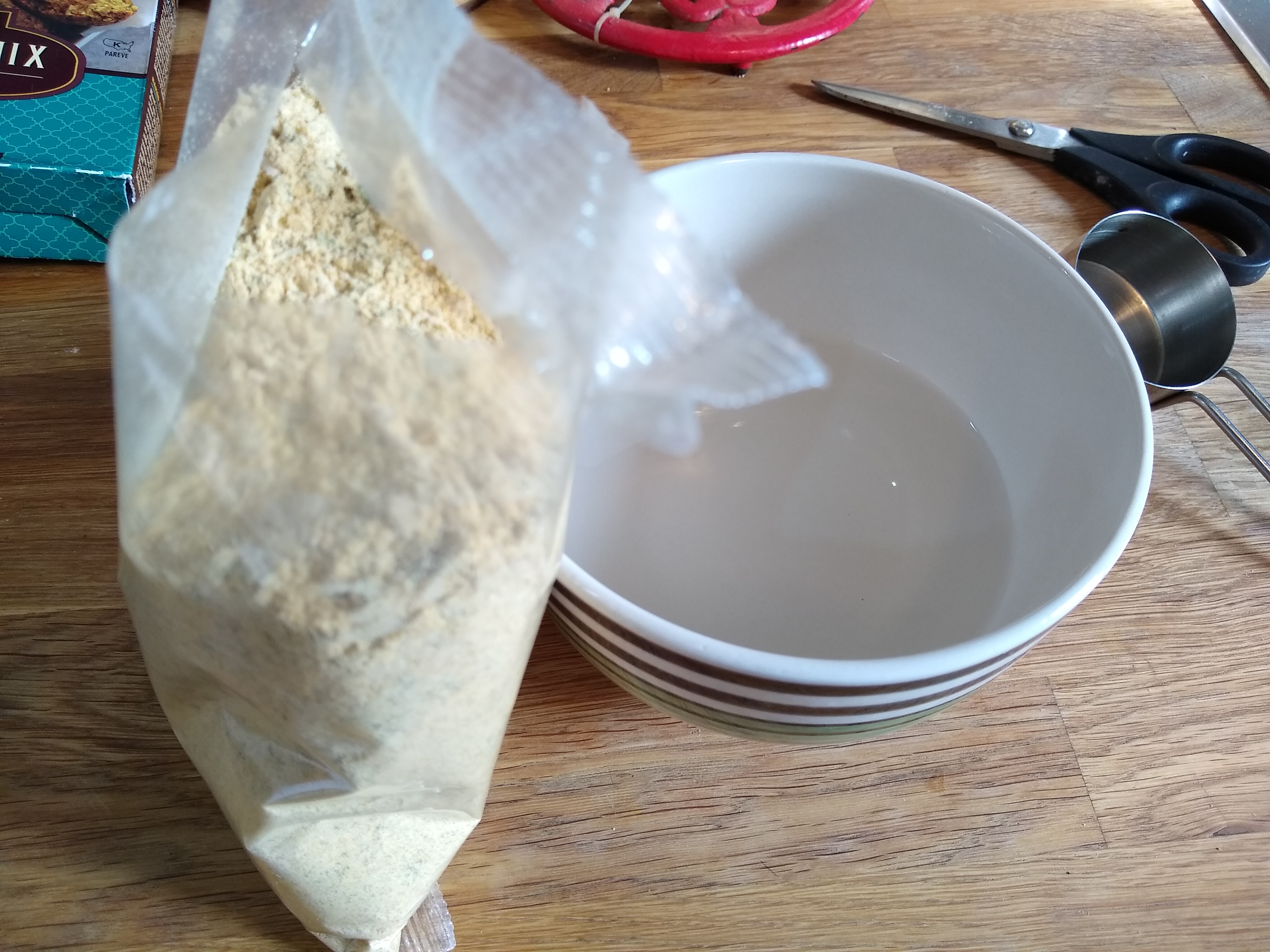 Last night I found some tortillas (they say they’re low carb and high fiber, probably good considering I’ve been eating a lot of pasta lately, but they’re a little tough compared to regular tortillas) and a tub of avocado tzatziki dip, which made it pretty much a given that I ought to pull out the falafel mix I found a couple weeks ago and run with the Mexican/Mediterranean fusion theme set by the dip.