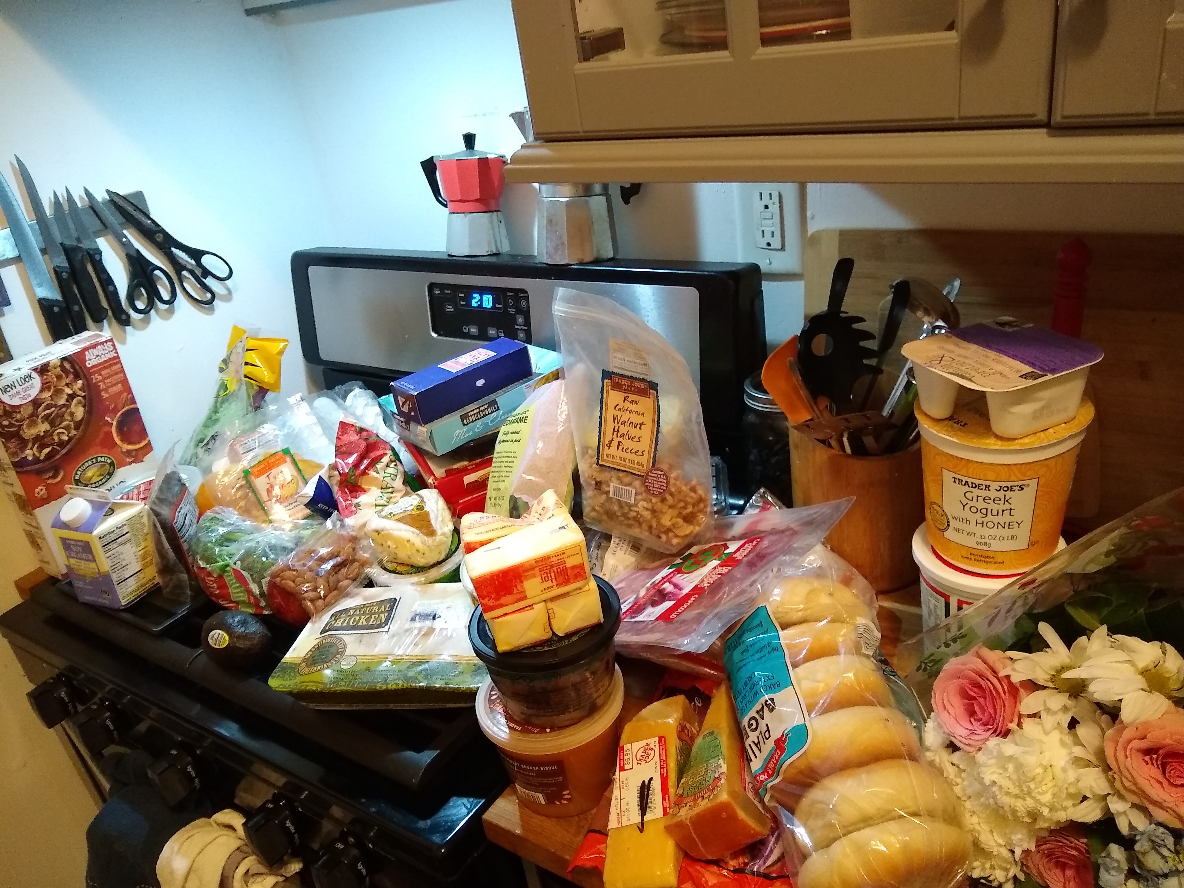 We also found two bags of unsalted roasted sunflower seeds. Neither of us wanted them (I wound up throwing out the rest of that sunflower seed risotto, it was a super dense rich food in a way that I couldn’t handle and had to lie down for quite a while after eating) so we put them out on the window sill for someone to take.