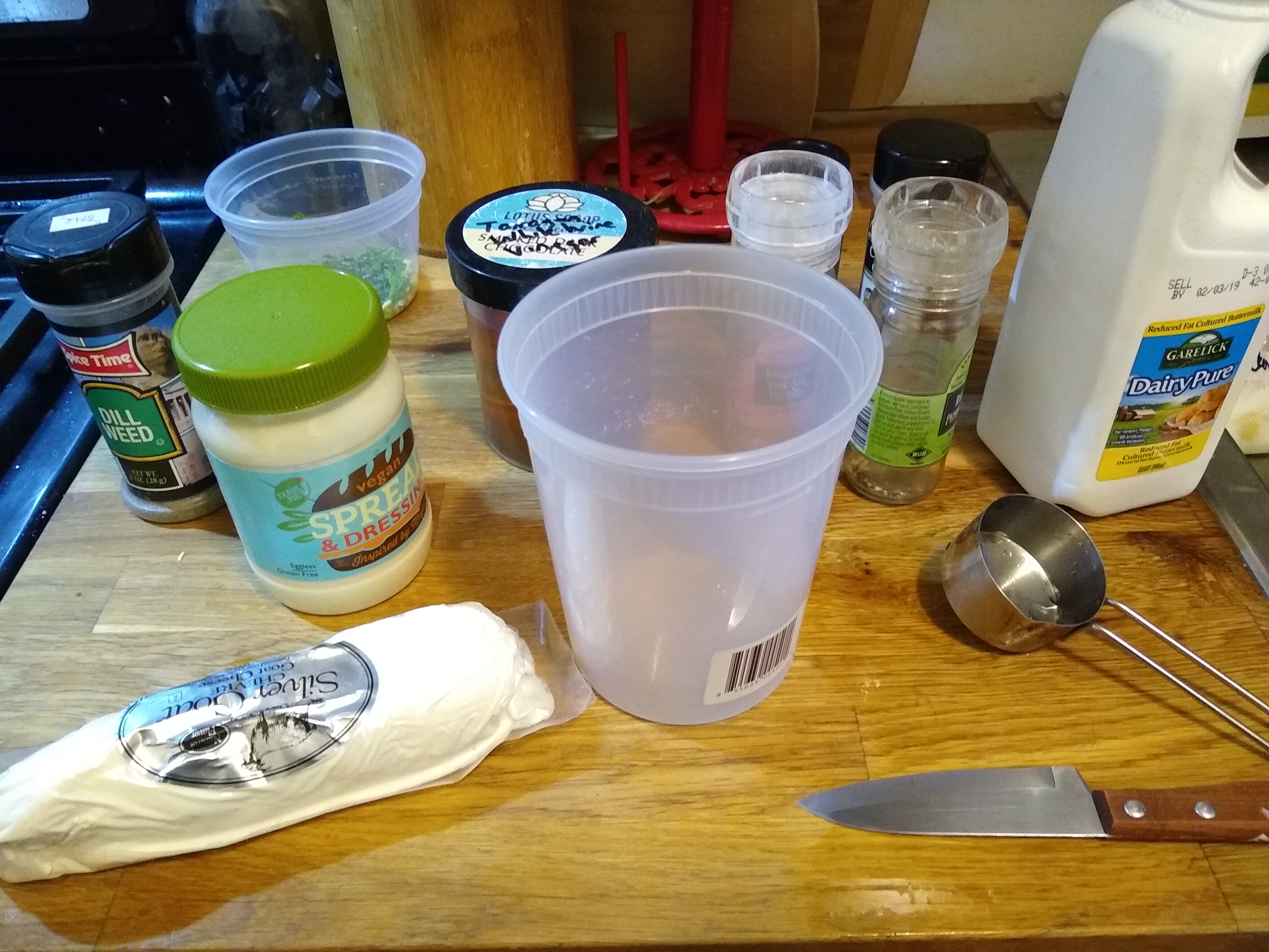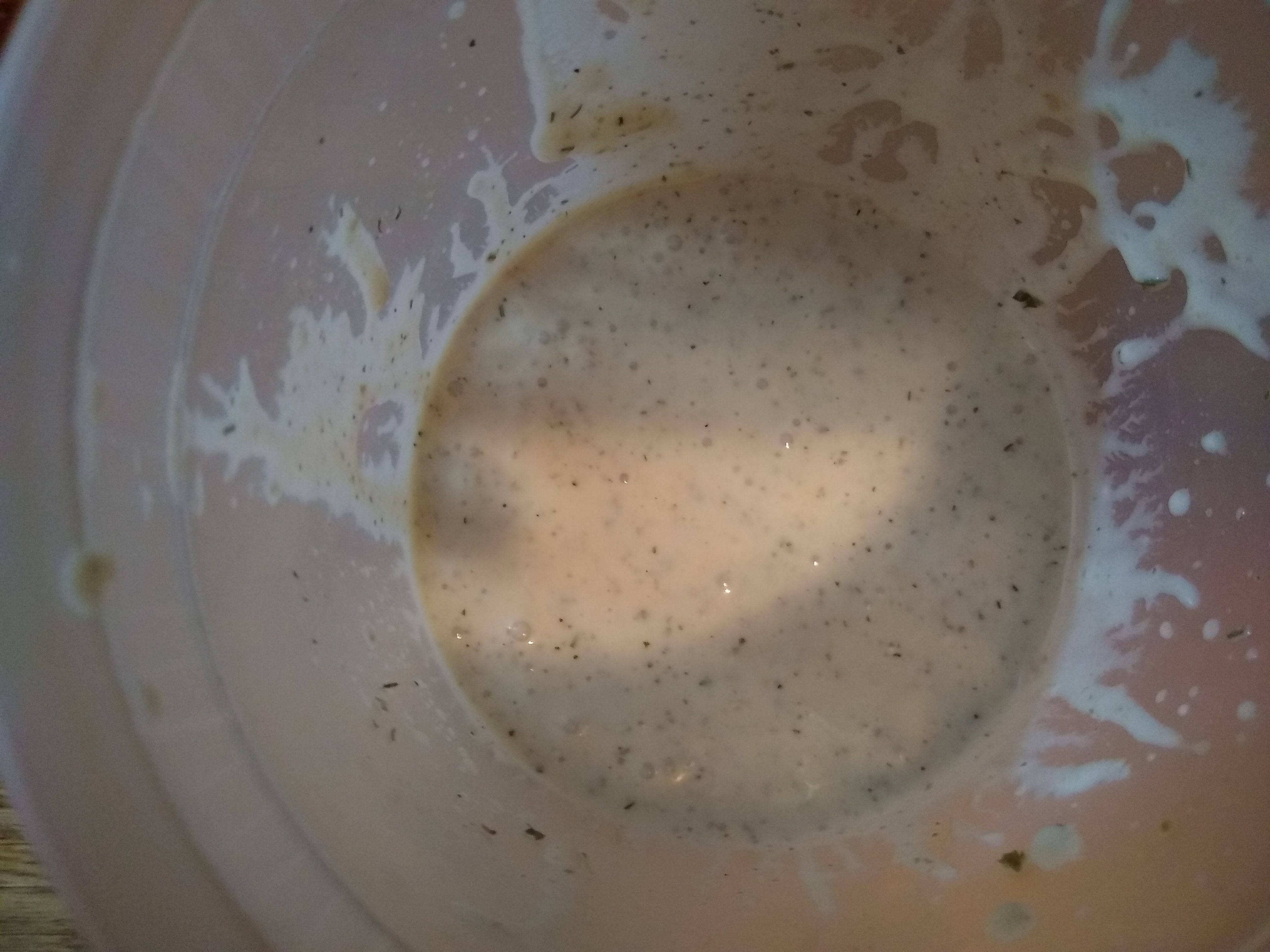 While the wings were baking I found a basic recipe for buttermilk ranch dressing and made a few substitutions, the main one being goat cheese instead of sour cream, blended it with an immersion blender and let the sauce rest in the fridge.