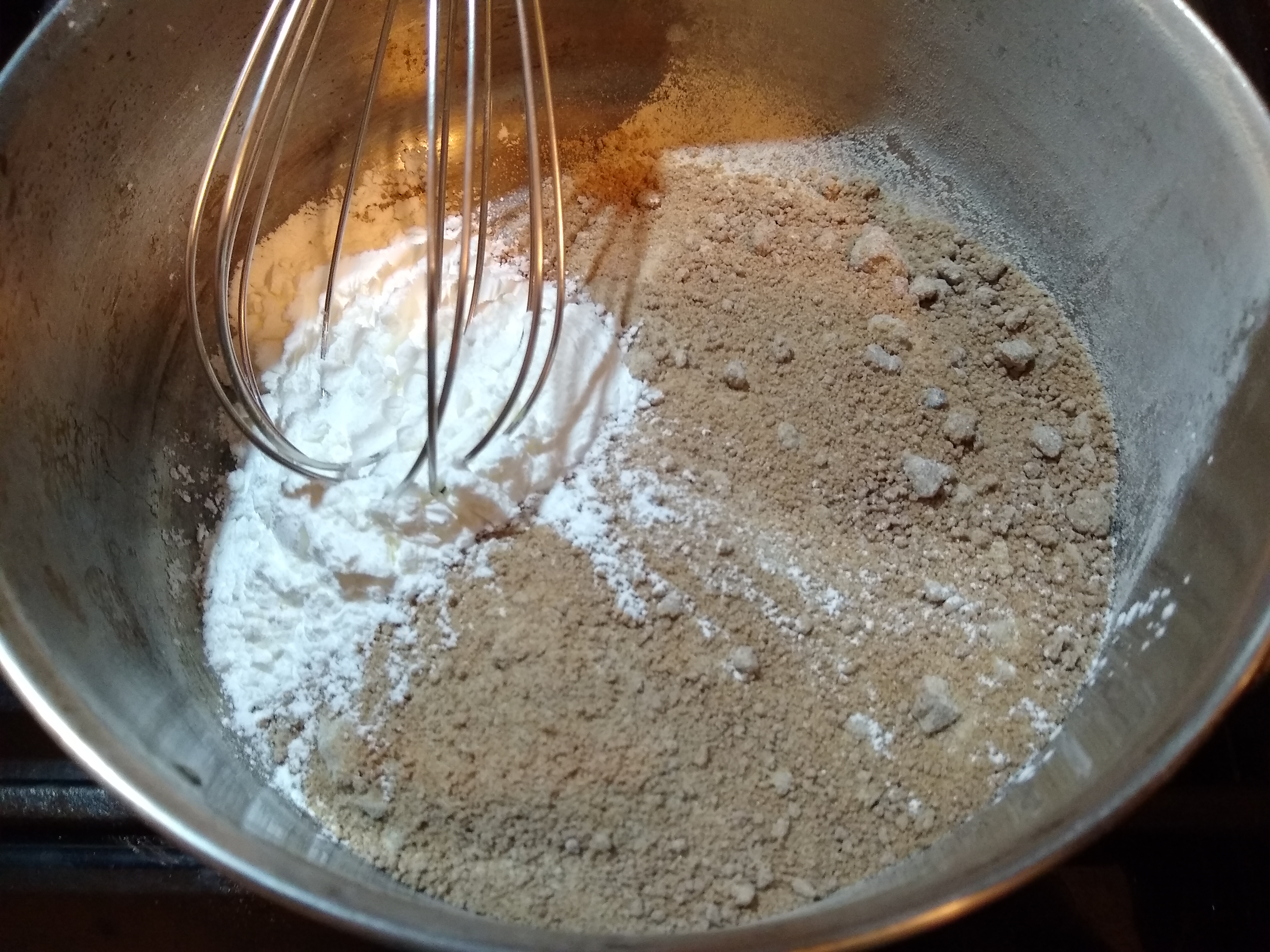 First, since my brown sugar had hardened into large rocks, I put it in the food processor with an unopened bag of brown sugar until it was almost completely powder. Then I mixed all the dry ingredients, the milk, and the cherry syrup and brought the mixture to a boil.