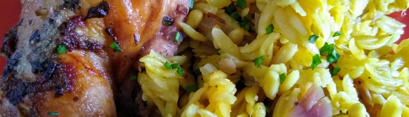 The orzo turned out great. The chicken, though… it’s hard to tell if a chicken is still fresh when it’s already marinated. I went to the trouble of thawing and cooking it and while it looks nice in the photos, it was a little off and I wound up throwing it out and microwaving some grilled chicken breast.