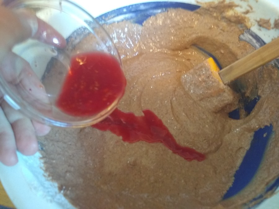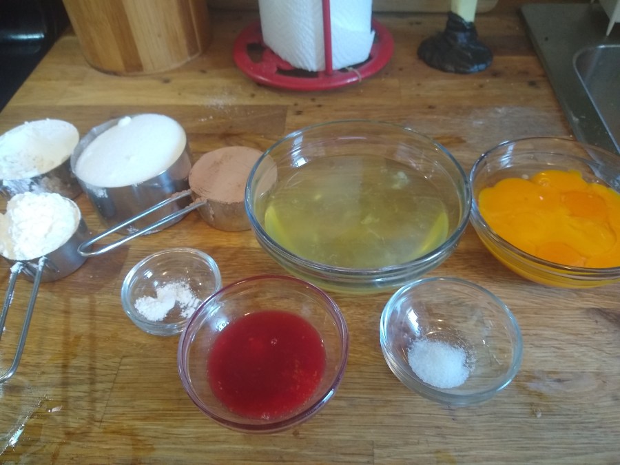 Japanese-style cheesecake, also called “cotton cheesecake” is sort of a cross between a traditional cheesecake and an angel food cake (or more accurately, a castella cake). The bulk of the cake is meringue, and this gives the cake its signature jiggle. I first heard of this cake from a Facebook ad for Keki Modern Cakes, and almost immediately ran out to get one. Keki’s creme-wich cake is cut horizontally and filled with a layer of cream nearly as thick as the cake. My friend was talking about how much he loves this cake, so I decided to make a chocolate one for his birthday. I found a recipe on Food52.com and used the recipe for a chocolate cake, but instead of omitting the lemon juice and zest, I used a blood orange.