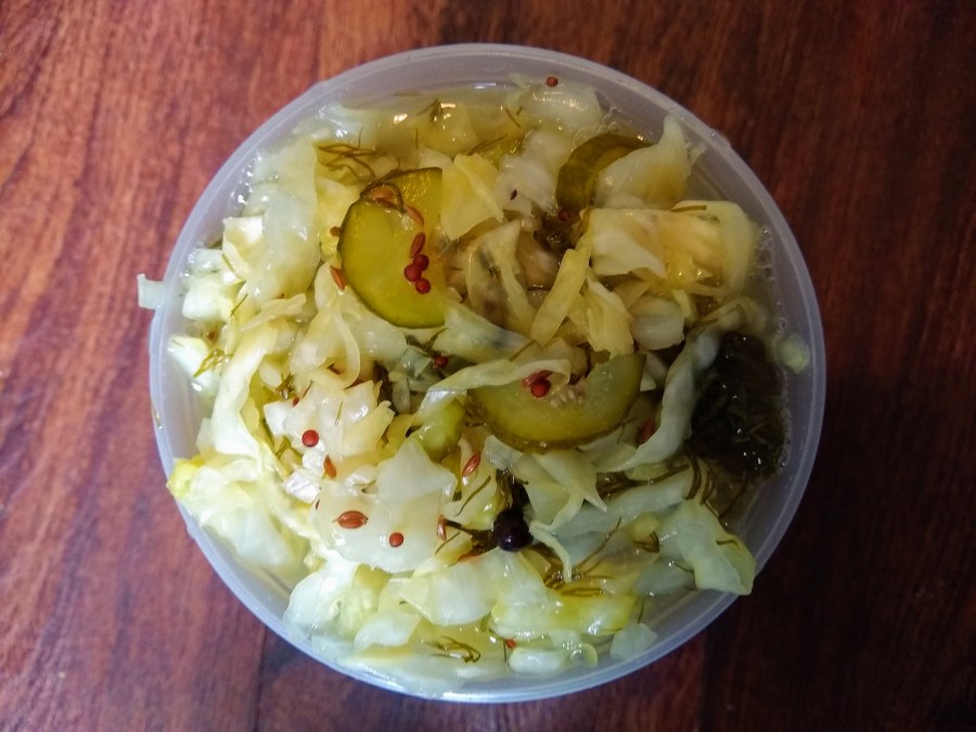 The sauerkraut is crunchy and lightly pickly, and came out very nice.