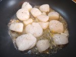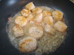 I seared the scallops in butter and oil with minced garlic (not hot enough, should have waited to flip to put the butter in, could have gotten a better sear, still good) for two minutes per side.