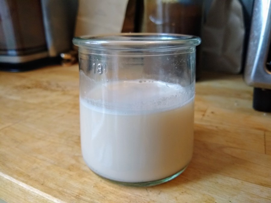 First you have to soak the nuts, overnight up to 48 hours. Then discard the soaking water and add fresh water. You should end up with twice as much water as nuts; I added less here to prevent the container from overflowing then added water to the final product.