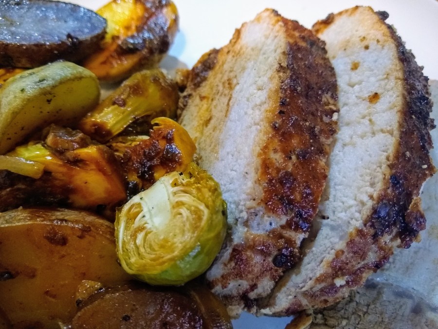 Today I used it to cook a pork loin (seared on the stove, then 400°F for 35 min) with little potatoes, Brussels sprouts, onion and garlic, a little fennel, salt and pepper, and a homemade BBQ sauce a friend gave me earlier this year.